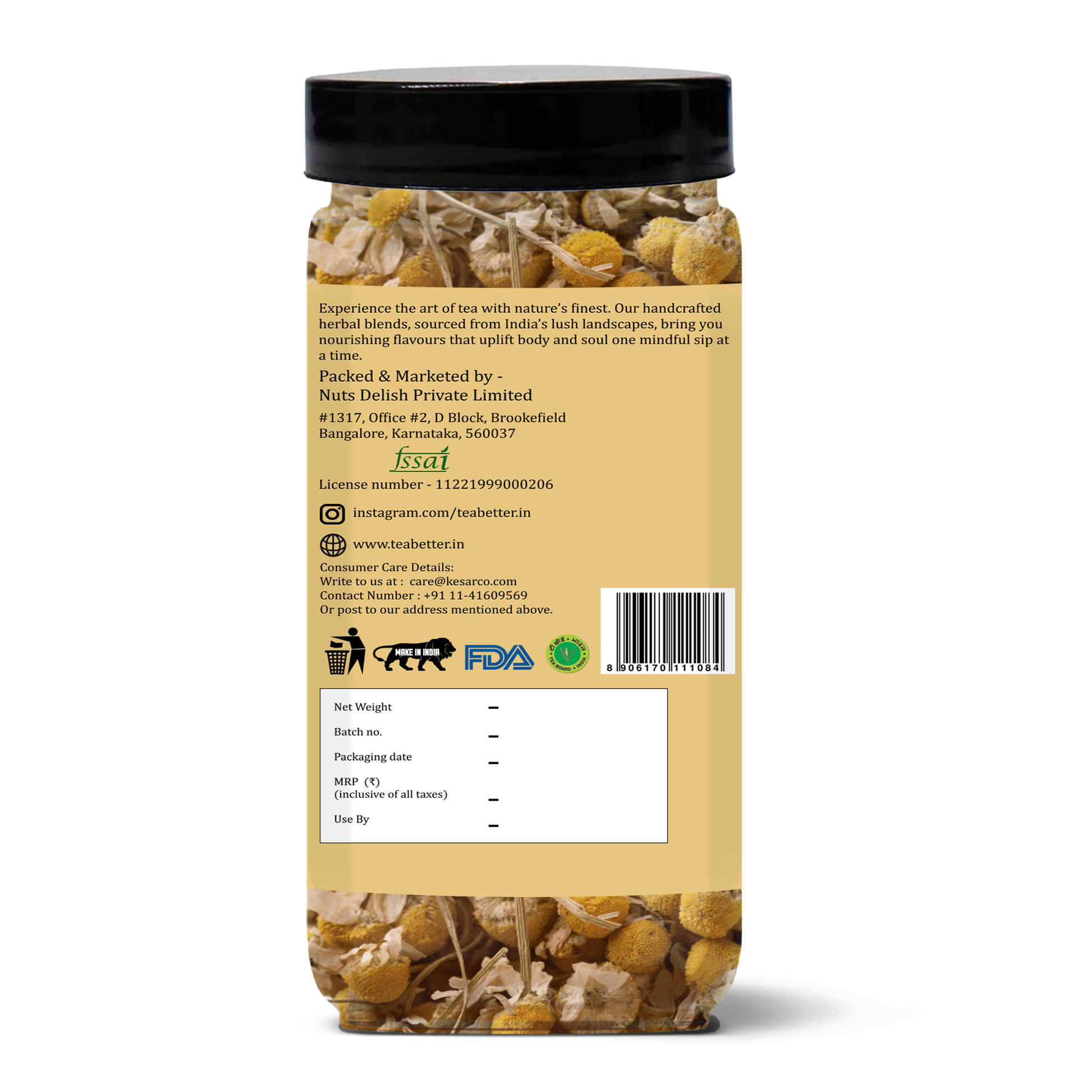 Experience a calming cup of Chamomile Tea. Made from all-natural chamomile flowers, this tea offers a soothing and relaxing effect, perfect for unwinding after a long day. Known for its anti-inflammatory and antioxidant properties, this tea is also a great choice for supporting overall well-being.